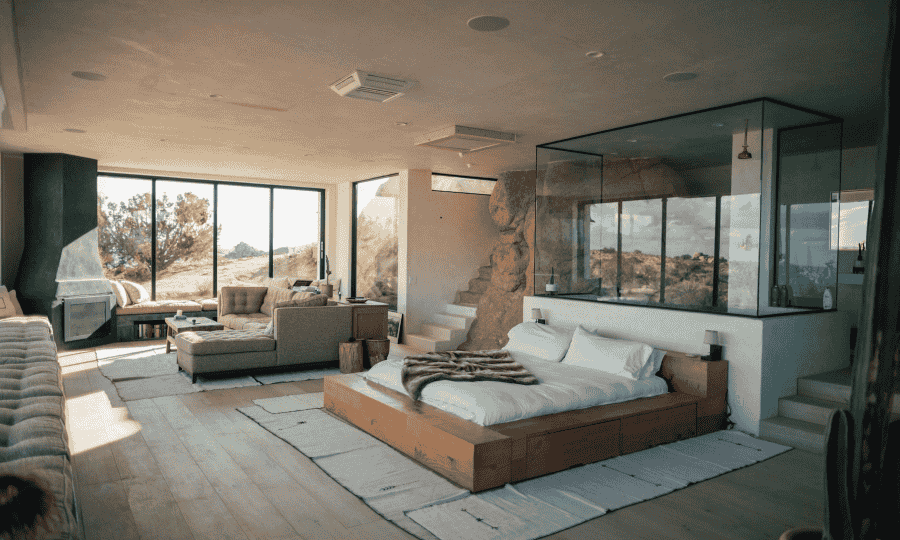 The en-suite bathroom is a masterpiece, featuring a soaking tub with a stunning view, a separate rain shower, and double vanity sinks. Premium toiletries and soft towels enhance the experience, making every moment of your stay feel like a personal retreat. The Platinum Retreat also includes a private balcony, offering breathtaking views of the surrounding area, ideal for enjoying a morning coffee or evening cocktail.